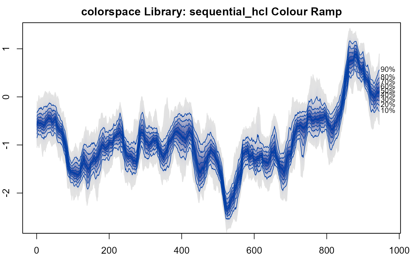 #> > plot(NULL, xlim = c(0, 965), ylim = range(th.mcmc)*0.85, main="colorspace Library: sequential_hcl Colour Ramp")