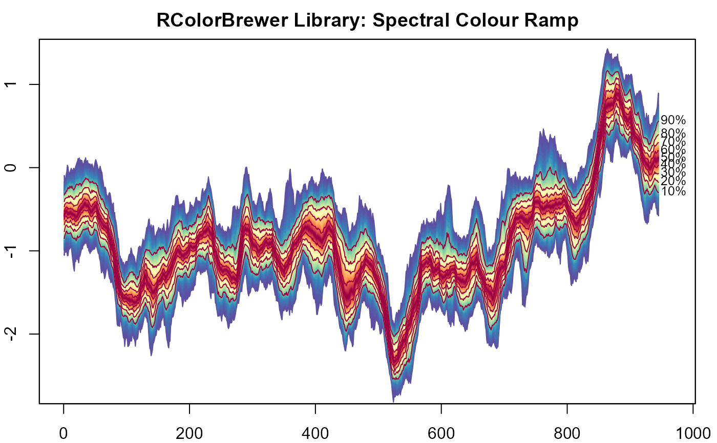 #> > plot(NULL, xlim = c(0, 965), ylim = range(th.mcmc)*0.85, main="RColorBrewer Library: Spectral Colour Ramp")