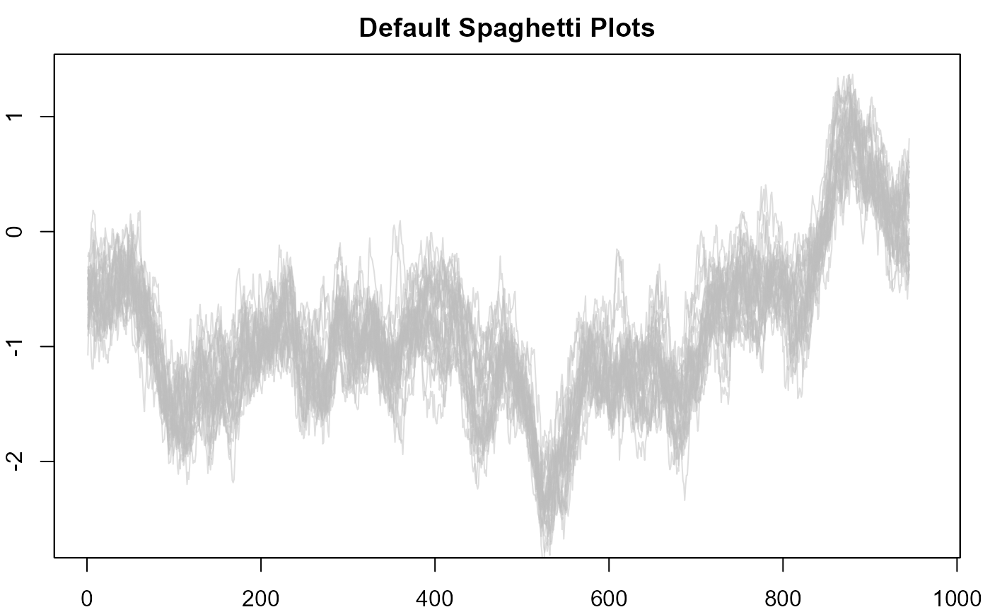 #> > plot(NULL, xlim = c(1, 965), ylim = range(th.mcmc)*0.85, main="Default Spaghetti Plots")