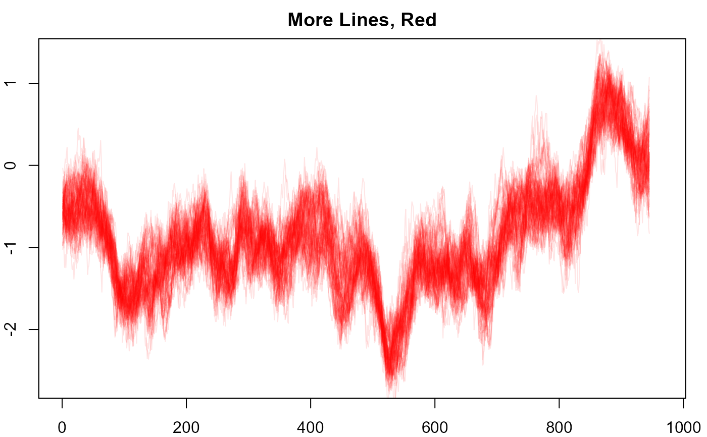 #> > plot(NULL, xlim = c(1, 965), ylim = range(th.mcmc)*0.85, main="More Lines, Red")