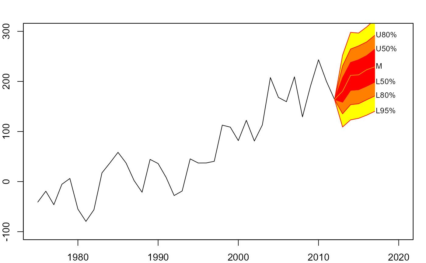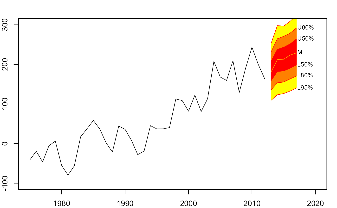 #> > fan(th.mcmc, probs = seq(10, 90, 10),