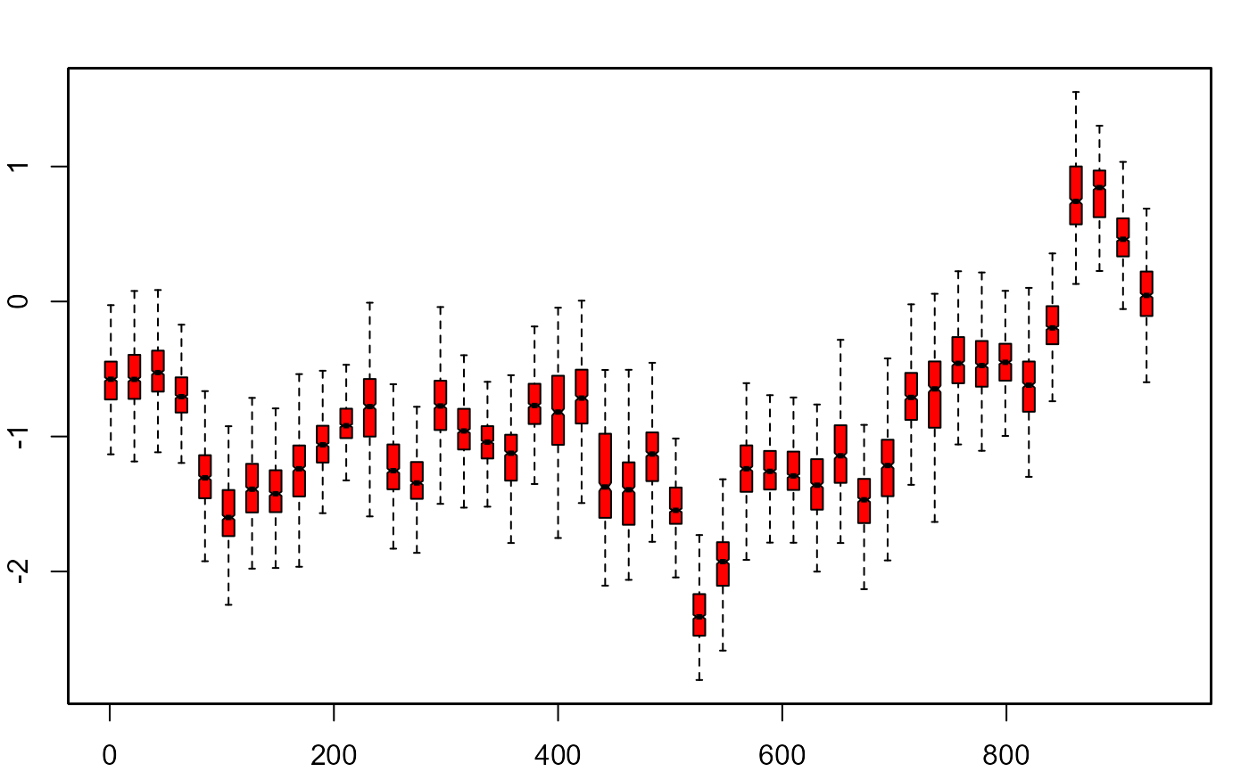 fan(th.mcmc21, style = "boxplot", frequency = 1/21)